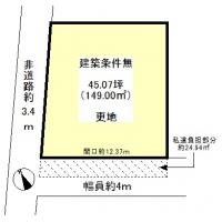 建築条件無、北側非道路、有効宅地面積約149平米・私道負担24.94平米別に有・公簿173.94平米