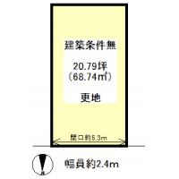 建築条件無、更地、有効宅地面積68.74平米、私道負担6.75平米別に有・セットバック面積約4.06平米・公簿80.91平米、土地先行決済要