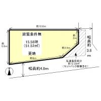 建築条件無、東南角地、有効宅地面積約51.51平米・私道負担約12.39平米別に有(セットバック面積含む)、公簿73.65平米・公簿取引、現状渡し、物件北側に北側隣家の一部が越境しています