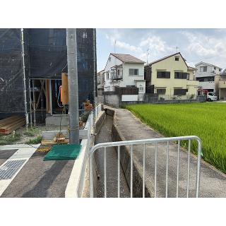 大規模分譲地。北西には嵐山の山並みが望める素敵な眺望、近隣には田んぼや畑がある静かな環境です。お買物はフレスココレモ嵯峨野店徒歩11分、フレスコ梅津店徒歩11分。学校は嵯峨野小学校徒歩12分。
